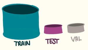 The researcher will typically split the collection of suitable data into three parts. The training data is given to the model to learn from. The validation data, which is be used during development for intermittent testing. Finally, the test set is for the final quality check.
