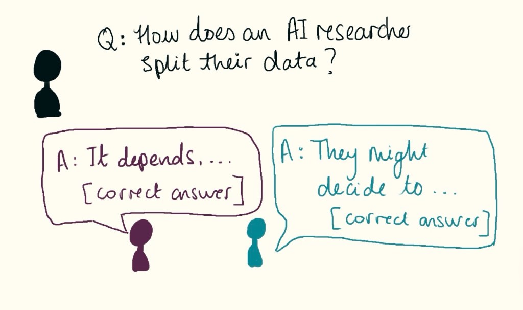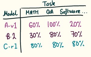 As I eluded to earlier, choosing a metric for evaluation on a task can be difficult. Particularly in the realm of language models, where the answers are free-form text, not just a box around a cat in the picture. I will explore this more in a future post. Think about how a teacher marks a writing exam. Several students in the class come up with answers to the same question. Let’s imagine all the answers are deemed correct by the teacher, but when compared word for word the answers look completely different. The teacher will have a marking scheme and will use their professional experience to subjectively mark the students.
