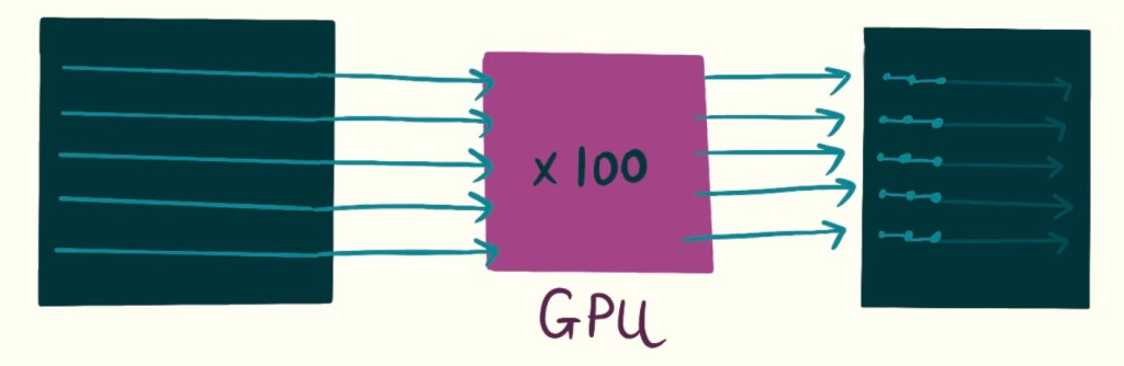 In some tasks, like ML or computer graphics, the specific operations are actually quite simple. There isn’t a huge variety of complex functions – but the scale at which they need to be computed is enormous. This type of application can make use of parallel computing.